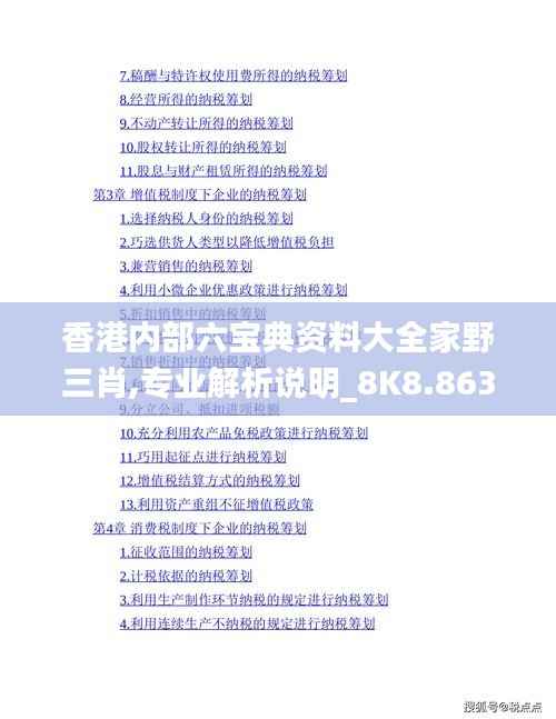 首先,我们来详细了解“香港内部六宝典资料”的基本概念和含义。这六种宝典资料是香港内部各类信息资料的集中体现,涵盖了经济、政治、社会、文化等各个领域。它们不仅为香港社会发展提供了重要参考,也为研究香港提供了珍贵且深入的第一手资料。具体来看,六宝典资料分别为:财经资料、政治资料、社会资料、文化资料、法律资料和历史资料。这些资料的汇总和编制,旨在为研究香港提供一个全面的视角和选择。8K8.863专业解析说明