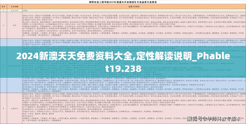 在数字化信息爆炸的今天,"2024新澳天天免费资料大全"成为了一个重要的信息平台,为广大用户提供免费、有价值的数据和资源。Phablet19.238作为这一资料大全的核心组成部分,致力于为用户提供最新、最准确的数据解读和服务。本篇文章将对这一平台进行深入的定性解读说明,帮助用户更好地理解和利用这一资源宝库。