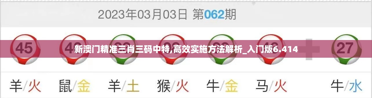 在博彩业界,新澳门因其精准的三肖三码中特预测而名声在外。这是一种高效实施的方法,被认为是初入门博彩游戏的资深玩家们所必备的一门技术。本文将为您详细解析如何利用新澳门精准三肖三码中特系统来提高命中率,旨在帮助各位玩家在博彩的道路上一路高歌猛进。