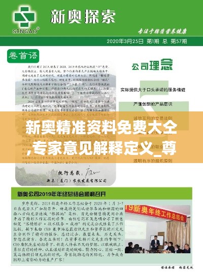 在这个信息爆炸的时代,数据和信息的精准性显的尤为重要。"新奥精准资料免费大仝",这样一个特殊的短语,揭示了当下社会对于专业知识以及信息共享的渴求。本文将深入探讨"新奥精准资料免费大仝"这一概念,并通过专家的意见来解释和定义其深层含义,进而在日常生活中得到尊享款3.477的应用体验。