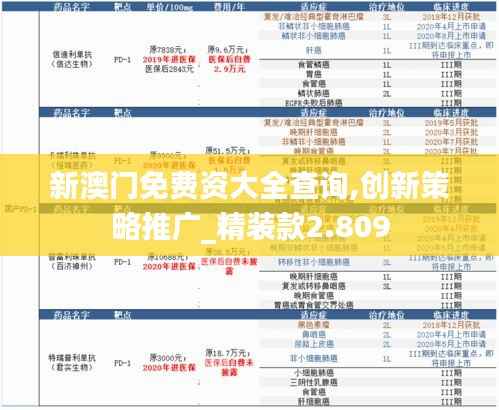 澳门特别行政区,作为中国的特别行政区,近年来在经济发展和社会进步方面取得了显著的成就。为了进一步推动澳门的发展,特此发布“新澳门免费资大全查询,创新策略推广_精装款2.809”政策文件,旨在为广大居民和企业提供更加全面、便捷的信息查询服务,并推广一系列创新策略,以激发澳门的发展潜力。