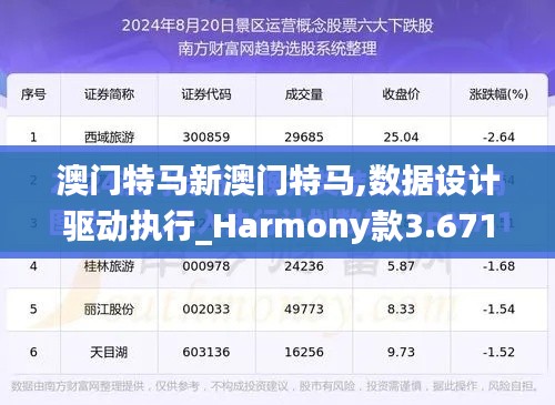 在当今这个信息飞速发展的时代,数字化转型已经成为了社会发展的重要趋势。澳门特别行政区在数字化道路上迈出了坚实的步伐,其中“澳门特马”项目作为推动地区数字化的重点项目,正是在这一大背景下,结合“数据设计驱动执行_Harmony款3.671”策略,为澳门的数字化建设提供强大动力和支持。