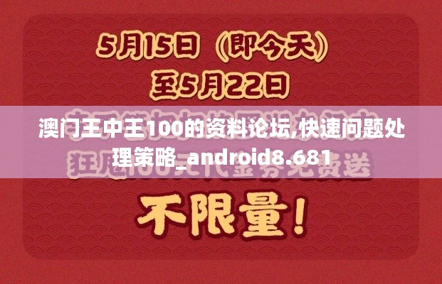 综上所述,"澳门王中王100"计划是澳门特别行政区政府为促进本地经济发展而推出的重大举措。资料论坛、快速问题处理策略和Android 8.681系统的应用,为项目的顺利实施提供了有力的支撑。随着项目的深入实施,澳门将继续提升其在全球经济中的地位,为澳门的繁荣稳定作出更大的贡献。