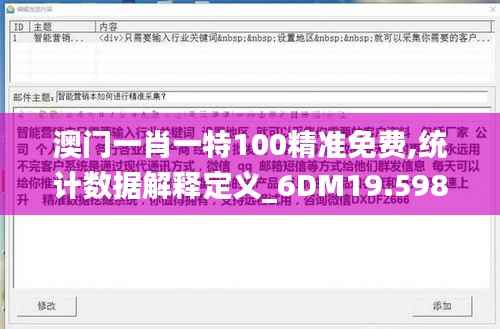 统计数据是指对澳门一肖一特政策执行情況及其效果相关的一系列量化信息的记录和呈现。数据的类型包括但不限于企业增长率、税收收入、创造职位数量、经济贡献度等。统计数据通过量化的方式为政策制定者、企业管理层及相关利益团体提供决策支持和参考依据。