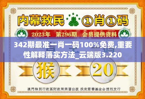 “342期最准一肖一码100%免费,重要性解释落实方法_云端版3.220”工具中的智能解释和落实方法能够极大地简化公众解读政策文件的过程。以下是这一应用的几个关键点: