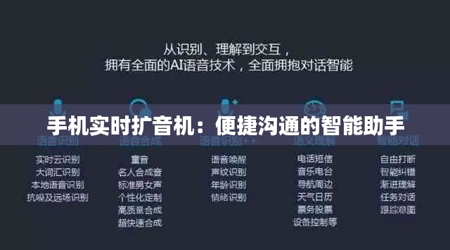 手机实时扩音机作为一款便捷的智能设备,为我们的生活带来了诸多便利。随着科技的不断发展,相信未来手机实时扩音机将更加智能化、人性化,为我们的生活带来更多惊喜。让我们共同期待这一智能助手在未来的表现吧!
