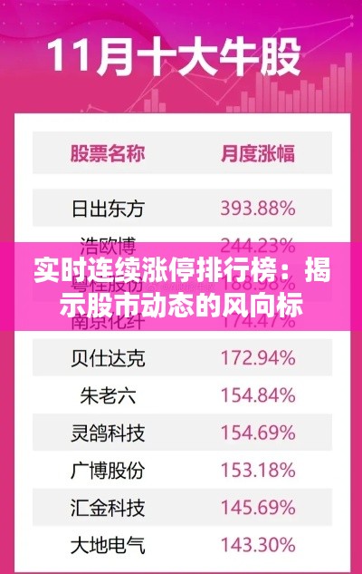 转载请注明来自深圳市鹏腾电子发展有限公司,本文标题:《实时连续涨停排行榜:揭示股市动态的风向标》