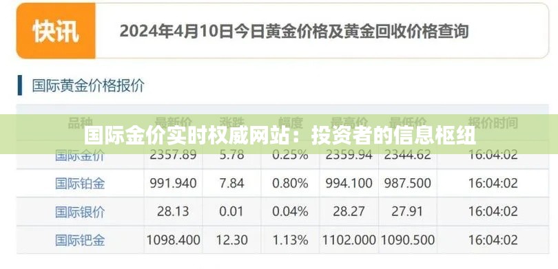 国际金价实时权威网站为投资者提供了便捷的信息获取渠道,有助于投资者更好地把握市场脉搏。在选择合适的金价实时权威网站时,投资者应综合考虑数据准确性、服务全面性、界面友好性和用户评价等因素。通过合理利用这些网站,投资者可以更加自信地参与黄金市场投资。