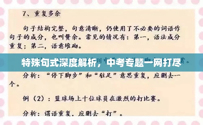 特殊句式是中考语文中的重要考点,考生需要掌握常见的特殊句式类型及其用法,还需要通过大量的练习来提高自己的理解和运用能力,在学习过程中,考生应注意总结归纳特殊句式的规律,提高解题技巧,为中考取得好成绩打下坚实的基础。