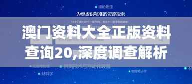 在这个数字化的时代,“澳门资料大全”作为一个全面、权威的澳门信息聚合平台,受到了广泛的关注和使用。它以“正版资料查询”为核心价值,提供最准确、最全面的澳门信息资源。这个平台涵盖了澳门的历史、文化、经济、社会等各个方面的数据和资料,为研究人员、学者、澳门本地居民以及对澳门感兴趣的外部人士提供了一个深入研究和了解澳门的重要窗口。 本篇深度调查解析说明,将全面深入地介绍“澳门资料大全”,系统地介绍其功能、内容、使用方式等方面的信息,旨在为您揭开澳门资料大全的真实面貌。本文专为对澳门有深度研究需求的读者准备,希望您在阅读过程中能够有所收获。