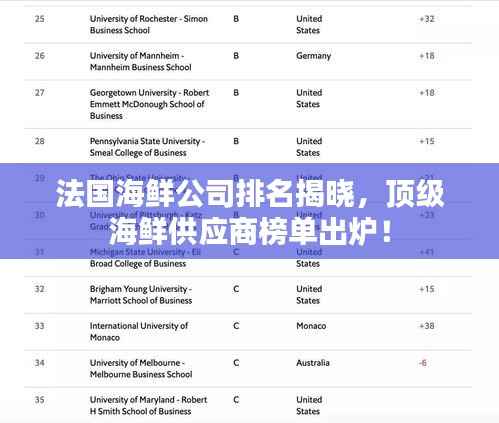 法国,一个享有丰富海洋资源的国家,其海鲜产业在全球范围内具有显著地位,本文将为您介绍法国海鲜公司的排名,带您了解这些引领法国海鲜产业的企业。
