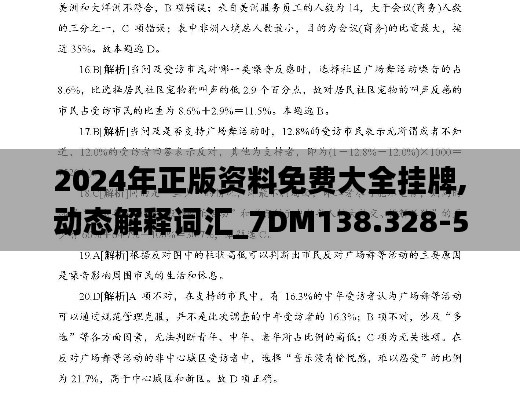 在"2024年正版资料免费大全挂牌"中,词汇的动态解释扮演着至关重要的角色。以"7DM138.328-5"为例,这个编码不仅仅是一串简单的数字和字母,它代表的是一组涵盖了多个领域的专业术语和知识点。这种动态解释的词汇,能够帮助用户快速定位到他们所需的信息,并在最短的时间内掌握核心内容。随着技术的发展,"7DM138.328-5"这样的编码将支持实时更新,以适应快速变化的行业需求和用户偏好,保持知识的时效性和准确性。