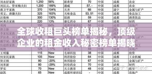全球收租巨头榜单揭秘,顶级企业的租金收入秘密榜单揭晓!