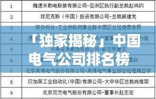 随着中国的快速发展,电气行业也在不断进步,众多电气公司如雨后春笋般崭露头角,本文将探讨电气公司在中国的排名,为您揭示电力行业的领军者。