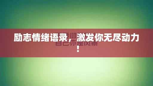在这个充满挑战与机遇的时代,我们时常需要一些励志的话语来激励自己,情绪语录与励志句子,就像生活中的灯塔,照亮我们前行的道路,它们提醒我们,无论遇到多少困难,都要坚持信念,勇往直前。