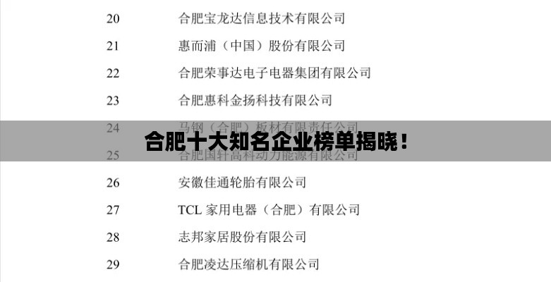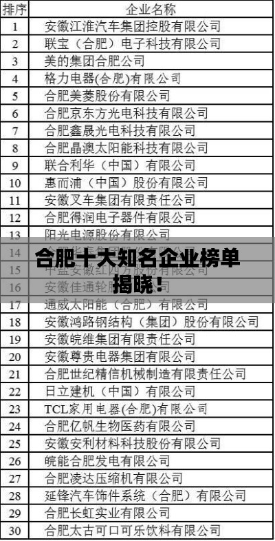 就是合肥排名前十的企业,它们在各自的领域里取得了卓越的业绩,为合肥的经济发展做出了重要贡献,相信在未来,这些企业将继续发挥自身优势,不断创新和发展,为合肥乃至全国的经济发展做出更大的贡献。