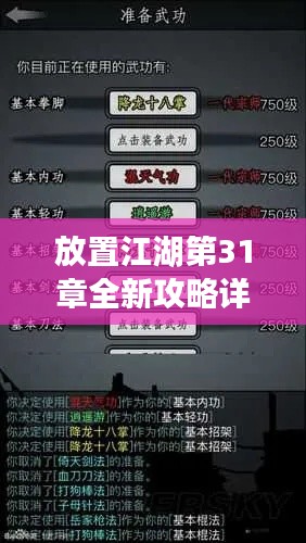 《放置江湖》以其独特的武侠风格和丰富的游戏内容吸引了众多玩家,这款游戏融合了角色扮演、策略战斗和社交互动等多种元素,让玩家在游戏中体验一段别样的江湖历程,进入第31章,游戏剧情和关卡挑战将更为精彩,本章主要讲述了玩家在江湖中的成长与挑战,以及与其他角色的互动。