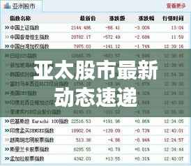 随着全球经济的日益融合,亚太地区的股市已成为全球投资者关注的焦点,亚太股市表现出最新的动态,本文将对相关情况进行分析和解读。