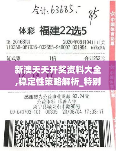 在众多彩票爱好者的期待下,“新澳天天开奖资料大全”应运而生,提供了一个全面、权威的彩票开奖信息交流平台。这里汇聚了新澳地区最为丰富的开奖数据资料,包括但不限于双色球、大乐透、福彩3D等热门彩票的开奖结果,市更是囊括了各种流派的彩票策略解析和专家意见。本大全的稳定性策略解析特别版,通过23.328-6的密集版本更新和优化,为彩民们提供了更为精确的数据分析和趋势预测,确保您在彩票投资中始终保持领先地位。