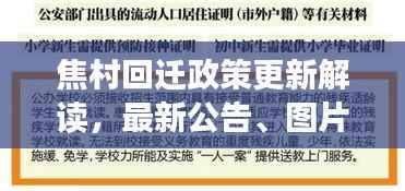 关于焦村回迁政策的最新公告引起了广大村民的密切关注,本文将从公告内容、政策亮点、相关图片及解读等方面,为大家详细介绍这一回迁政策的最新动态。