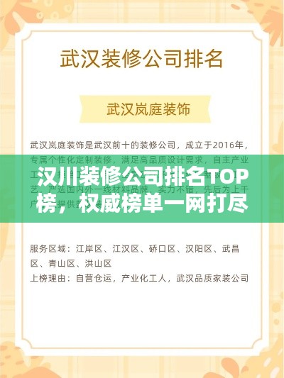 随着社会的快速发展,人们对居住环境的要求越来越高,装修行业也应此而蓬勃发展,在众多的装修公司中,汉川地区的装修公司因其优质的服务和专业的技术赢得了广大客户的信赖,本文将为您介绍汉川地区最大的装修公司排名,帮助您更好地了解当地的装修市场,为您的装修需求提供参考。
