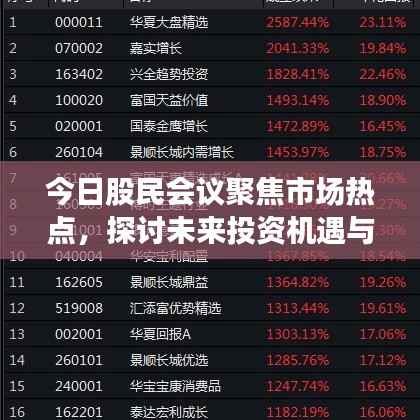 随着股市的日益繁荣,越来越多的投资者开始关注股市动态,一场关于最新市场消息、未来投资机遇与挑战的股民会议吸引了广大投资者的关注,本文将为您带来会议的最新消息及解读。