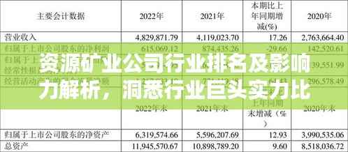 随着全球经济的持续发展,资源矿业行业的重要性日益凸显,本文将探讨全球资源矿业公司的排名及其行业影响力,分析这些公司在全球矿业领域的地位以及未来的发展趋势。