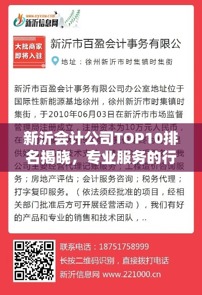随着经济的发展,会计行业在新沂市得到了蓬勃的发展,众多会计公司在新沂市场上竞争激 列,提供各种专业的会计服务,本文将介绍新沂会计公司排名前十名,这些公司在行业内具有 良好的声誉和广泛的影响力,为客户提供优质的服务。