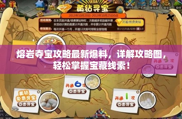 熔岩夺宝一直是众多游戏爱好者关注的焦点,最新爆料攻略图已经出炉,本文将为大家带来详细解读,让你轻松掌握夺宝攻略图的精髓,赢取丰厚奖励。