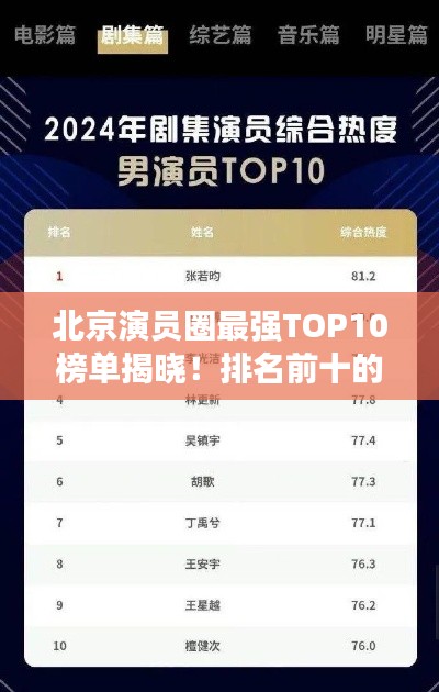这些在北京打拼的演员排名前十名,他们凭借出色的表演和不懈的努力赢得了观众的认可和喜爱,他们的成功经历也告诉我们,只有付出努力、认真拼搏才能实现梦想。
