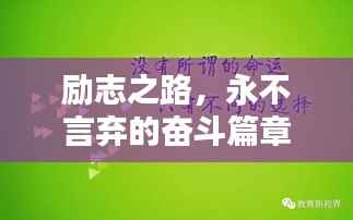 在人生的旅途中,我们总会遇到各种困难和挑战,面对这些困难,有一种力量能够激励我们前行,那就是励志的力量,让我们一起来分享一些关于“不放弃”的励志语录,让你在人生的道路上勇往直前。