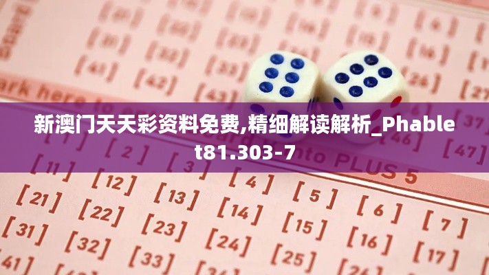 在这个信息爆炸的时代,获取有价值的资料和信息成为了每个人都在追求的目标。特别是对于那些渴望了解和参与新澳门天天彩的人来说,获取准确的资料和细致的解析无疑是成功的关键。"新澳门天天彩资料免费,精细解读解析_Phablet81.303-7"这一话题应运而生,旨在为广大参与者提供一个全面、深入的平台,以便他们能够更好地把握游戏规律,提高中奖几率。我们将从资料收集、解析技巧、策略应用等角度,为大家提供细致的解读,确保每个人都能在新澳门天天彩的世界中游刃有余。
