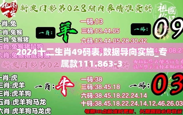 随着时间的流转,2024年的脚步越来越近。这一年,我们迎来了十二生肖的第四个周期的尾声以及第五个周期的起始。中国的十二生肖,不仅是中国传统文化的重要组成部分,也是丰富多彩的文化符号,它们穿梭在人们的生活之端,象征着不同的年份、性格特征以及运势。在这篇文章中,我们将探索由2024年起始的这一生肖周期中,各生肖如何通过数据导向理念,赋能用户生活的各个领域,特别是在商品编码系统上,如何通过49码表的先进智慧布局,实现数据的精准导向与实践应用,以及“专属款”产品的独特魅力。