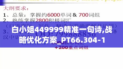 在数字与代码交织的时代,"白小姐449999"如同一条隐秘的指令,引领我们探索不同的信息维度。以这个指令为关键词,我们企图在广州这座繁华都市中,编织出一幅战略优化的绚丽图景。白小姐449999,不仅仅是一个数字,它寓意着精准和专业,是对目标的精准锁定与深刻理解。在这篇策略优化方案中,我们将深入探讨如何将这种细致入微的精神贯穿到我们的计划中,使之成为一种持续发展的战略优势。在这个PT66.304-1项目中,“精准”将是我们的核心追求,无论是在策略的规划,还是执行的过程中。