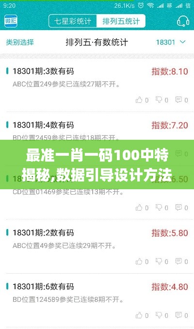 在信息技术飞速发展的今天,各行各业都在运用数据分析与科学设计方法进行创新与优化。"最准一肖一码100中特揭秘"这一关键词吸引了众多关注,这不仅是对技术精准度的挑战,更是对方法论深度的探讨。本篇文章将结合数据引导设计方法,深入探讨如何有效提高精准度,让我们以硬核版VLR27.418为基础,全方位地解析与实现。