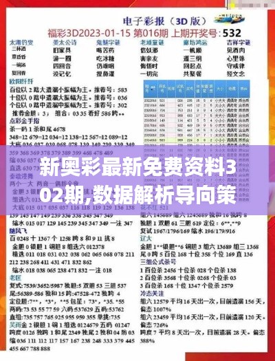 数据分析是彩票投注过程中至关重要的一环。通过对历史数据的深入挖掘和研究,彩民可以发现一些潜在的规律和趋势,从而为选号提供有力的依据。新奥彩免费资料302期中的数据解析部分,正是为了帮助彩民更好地把握这些规律,提高中奖几率。