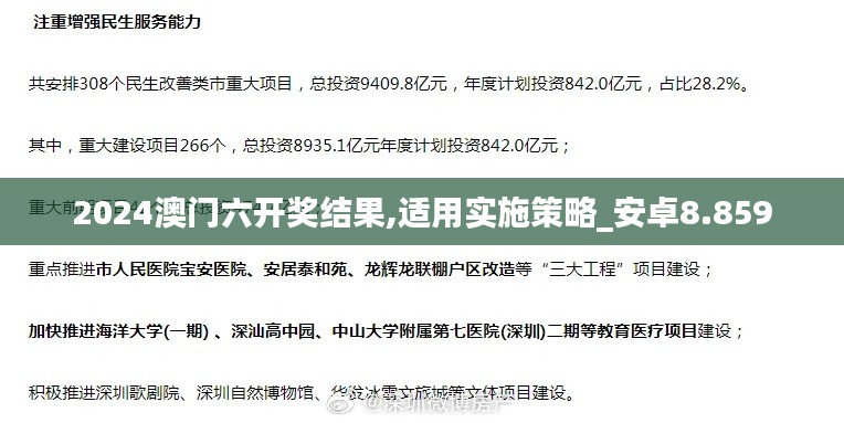 引言:2024年澳门六开奖作为亚洲博彩业的重要风向标之一,一直受到世界各地博彩爱好者和专业分析师的密切关注。澳门六开奖的特点是数字多、变化快、结果随机,使得每次开奖都充满了未知和惊喜。本文将详细分析2024年澳门六开奖结果,并结合最新数据,讨论实施策略在安卓8.859系统中的应用。